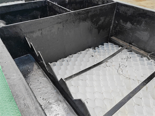 ②先裝填好斜管,再分別安裝兩層不同規格的斜管,并采用扎繩固定。